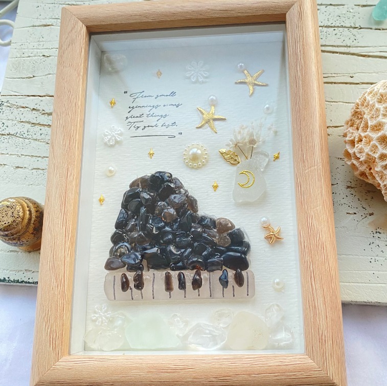 また、4つの作品と一緒にモリオンの天然石を使用した作品のオーダーをいただき黒い天然石を使用することは初めてで蝶々とピアノの作品を制作しました。