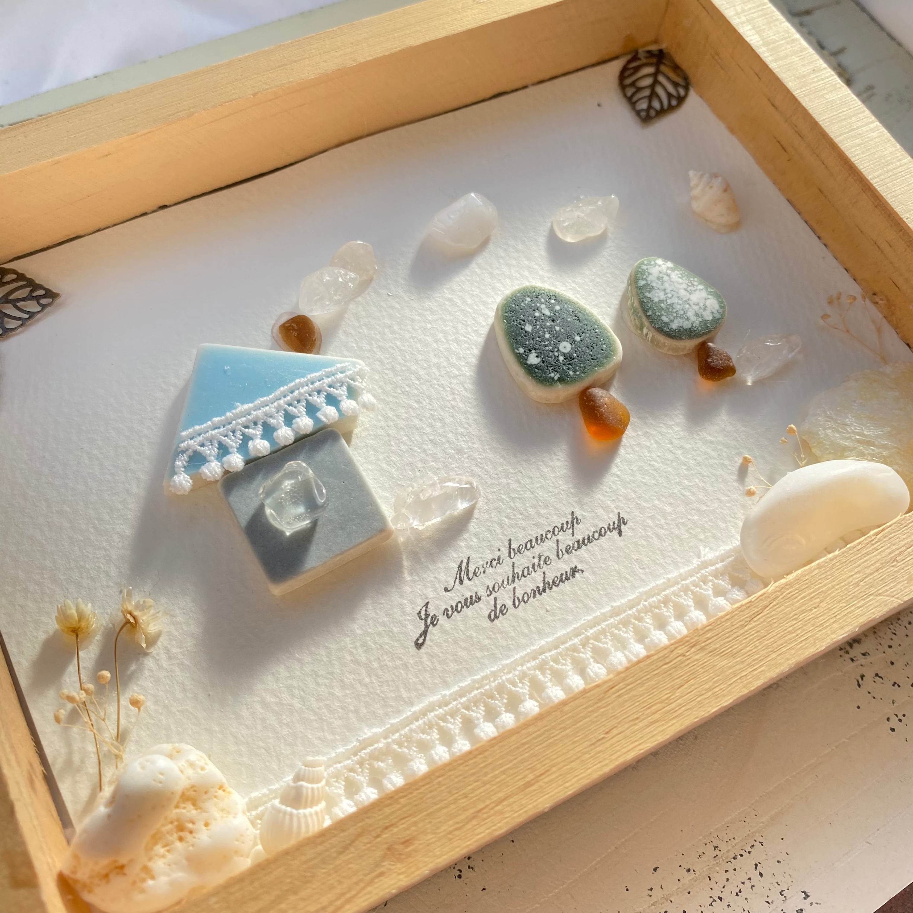海の宝物、シータイルでできたおうちと木の可愛い作品です。