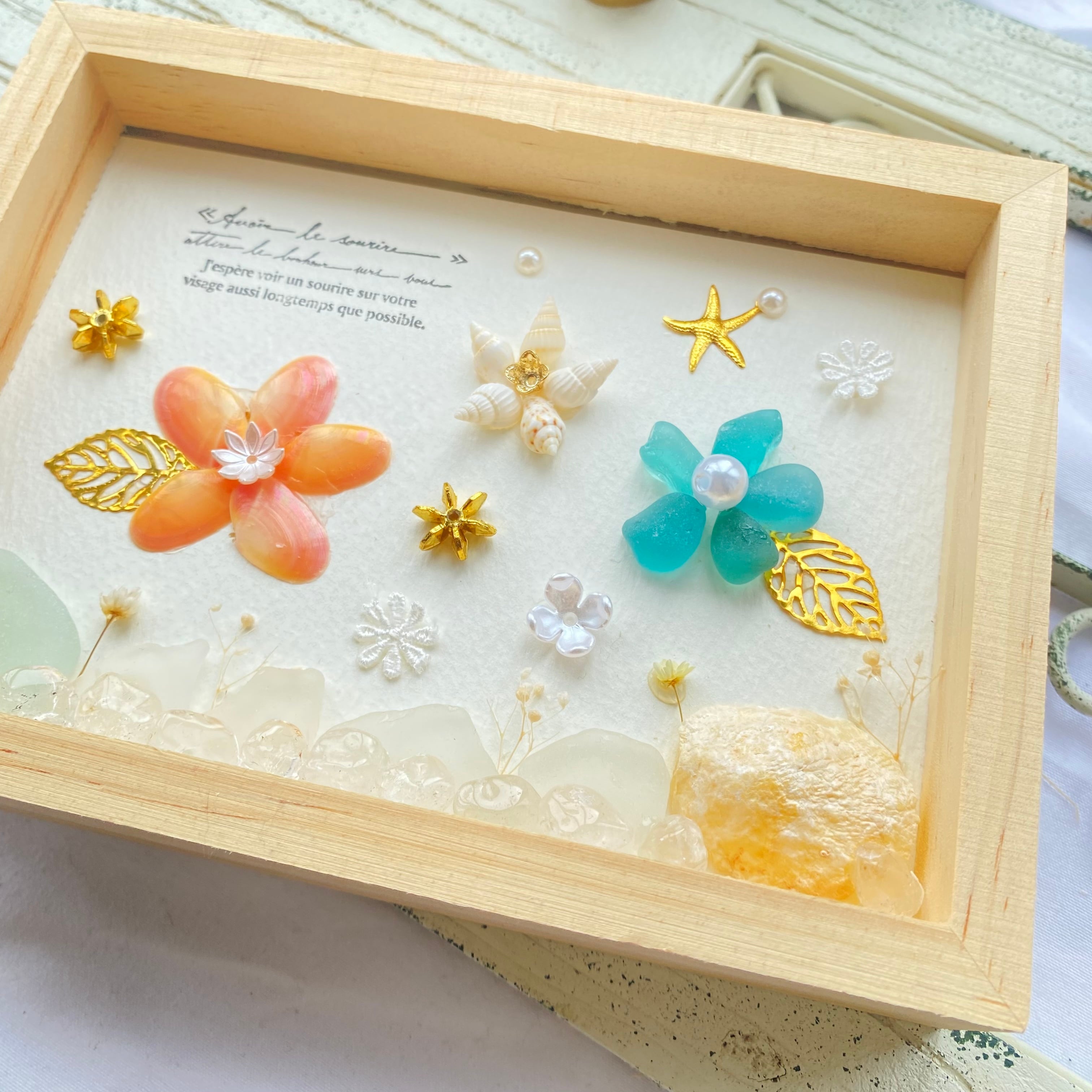幸運を運ぶシーグラス、桜貝、水晶が沢山の
