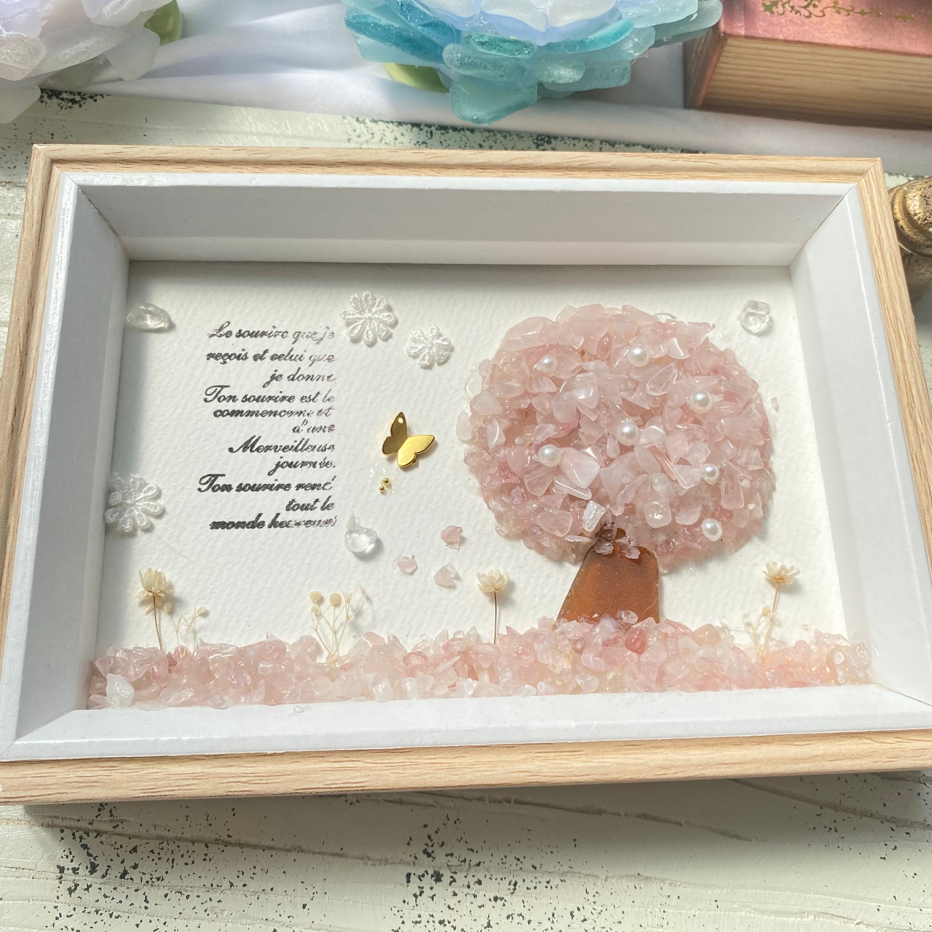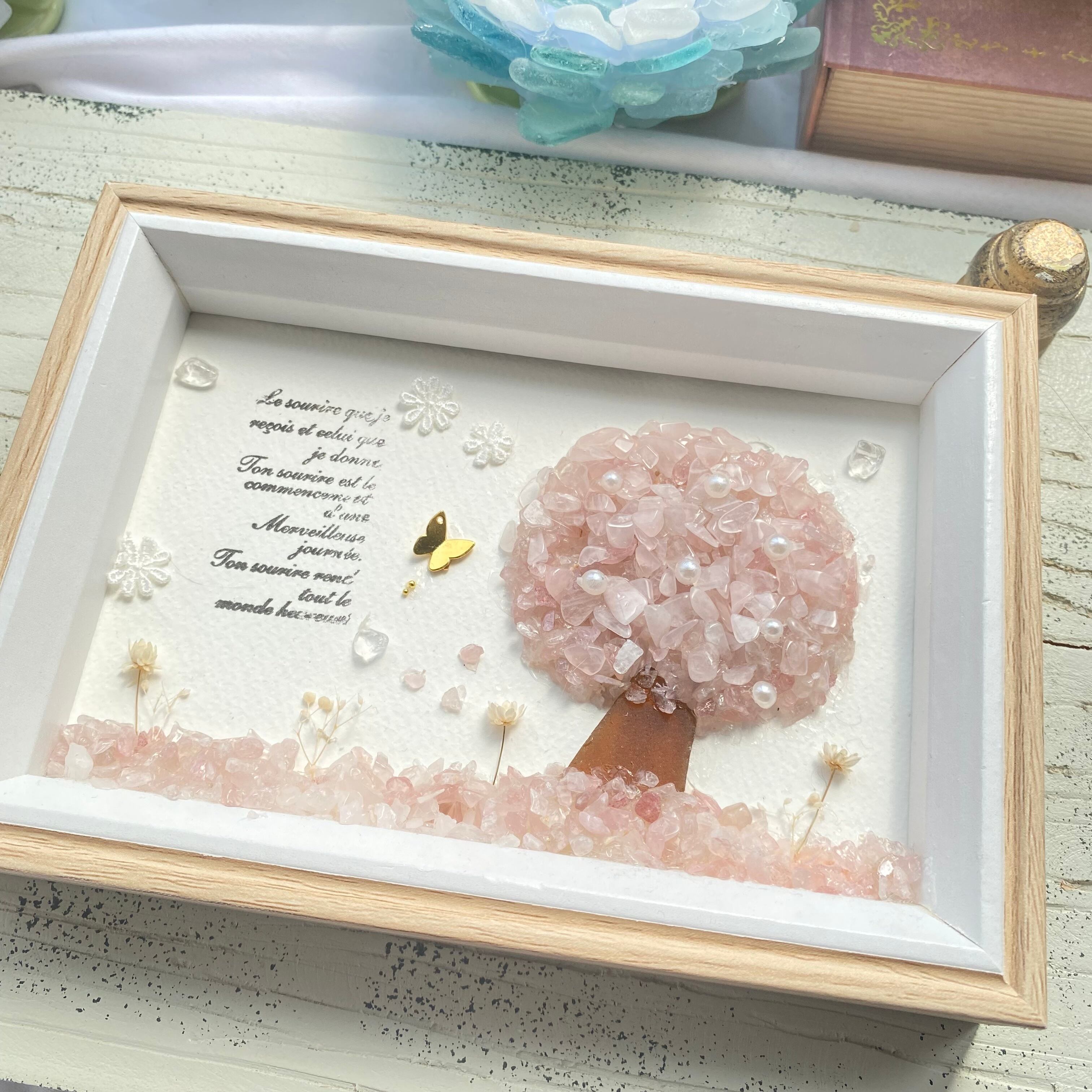"恋愛成就/女性性を高めるローズクォーツの桜の木。"