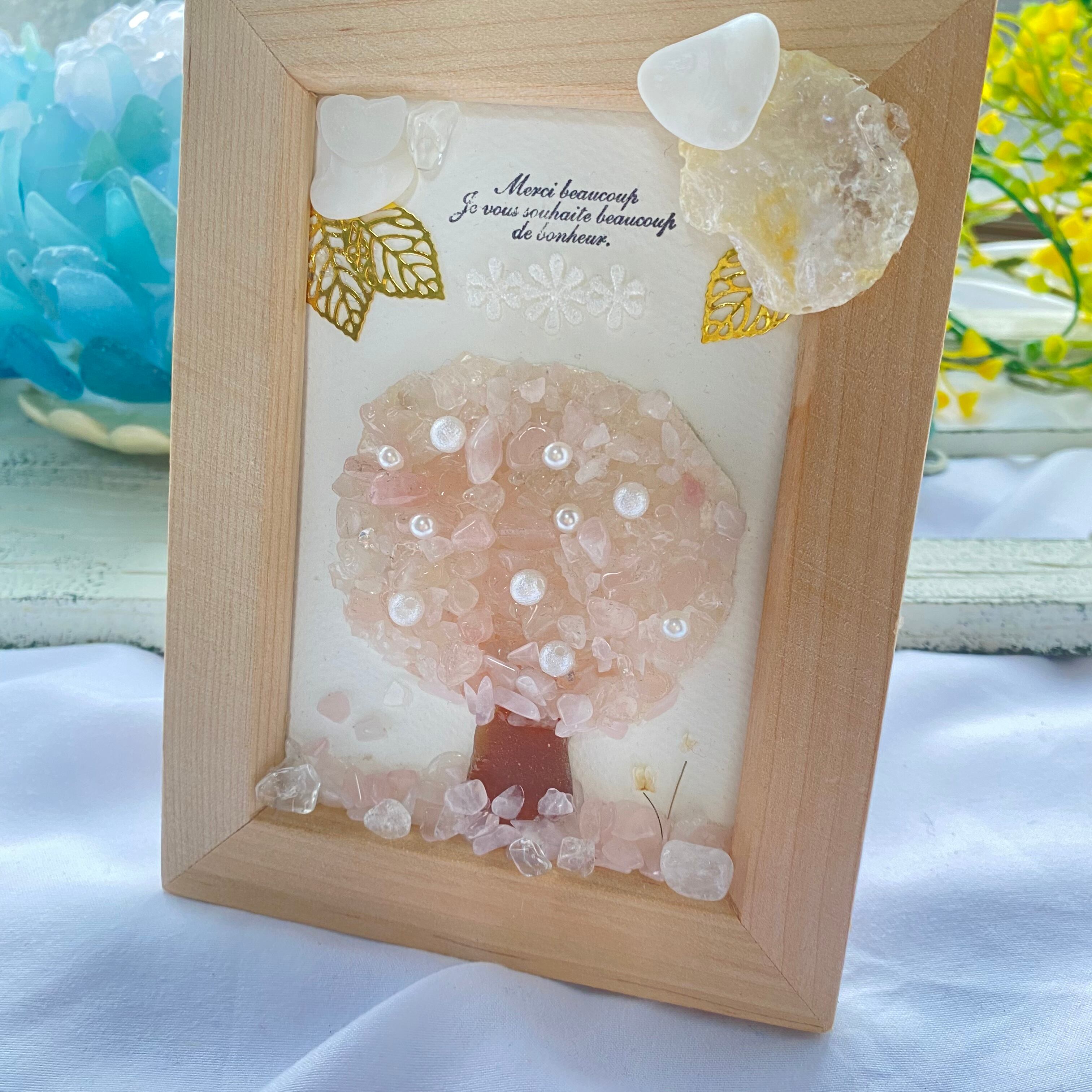 天然石ローズクォーツのさざれ石を盛り沢山に使い桜の木を作りました。