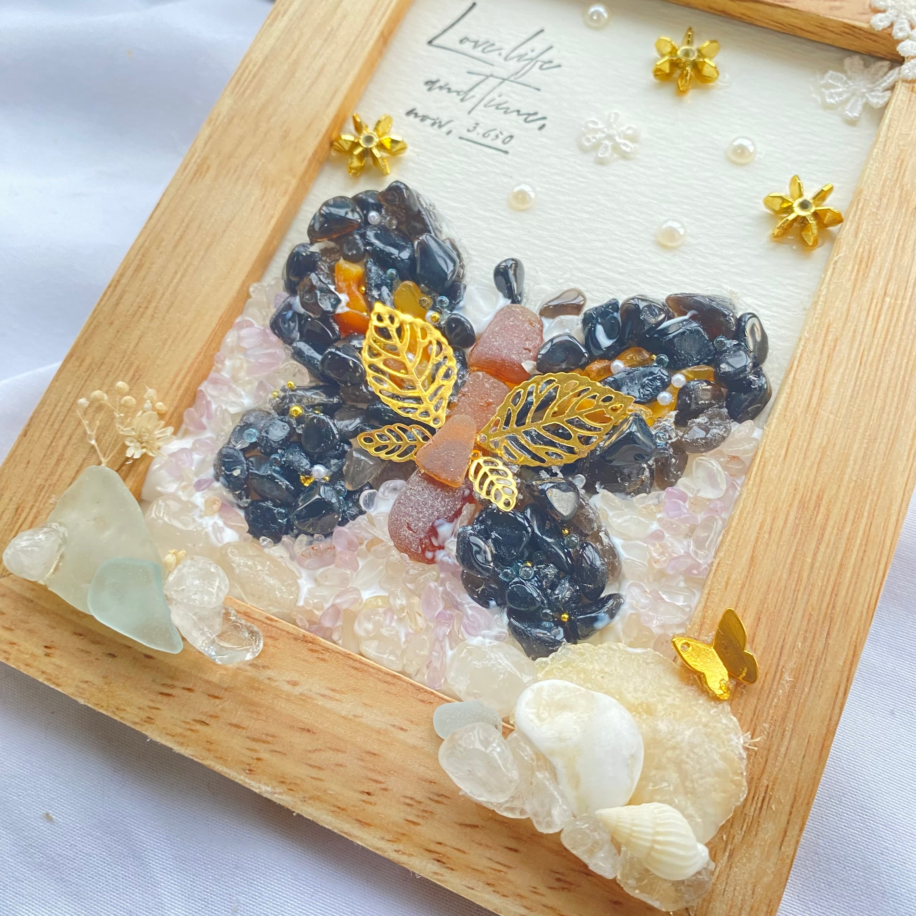 アゲハ蝶の周りにはラベンダーアメジストのさざれ石を沢山敷き詰めています。
