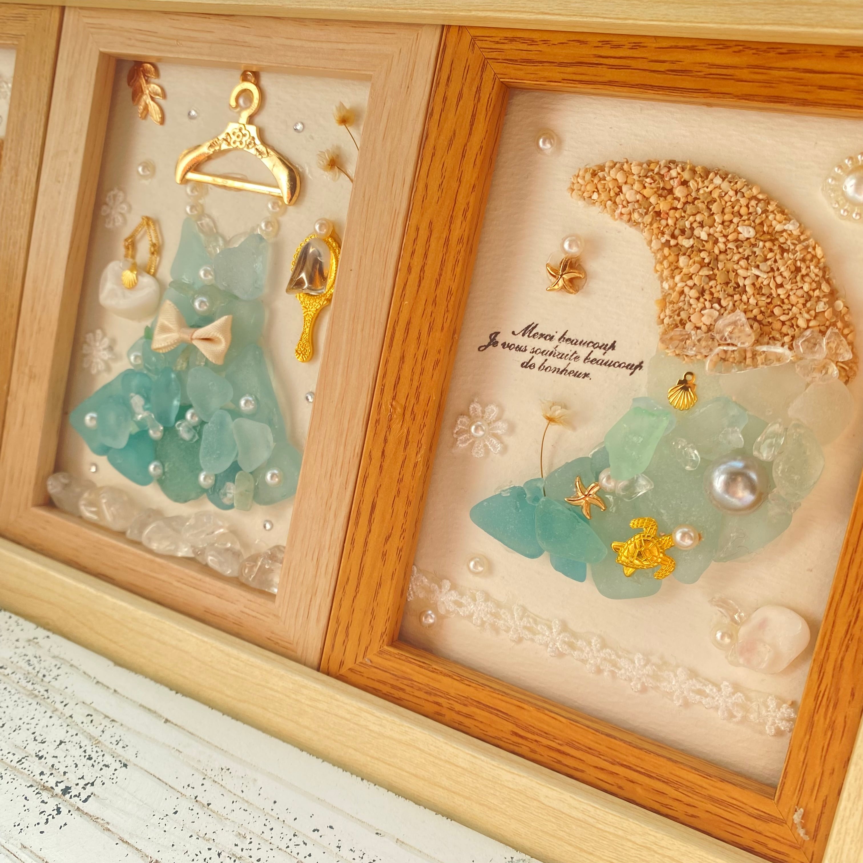 【残り1点オーダー注文作品】【大きめサイズ】【高品質フレーム使用、取り外し可能透明カバー付】"海と月からの贈りもの。"