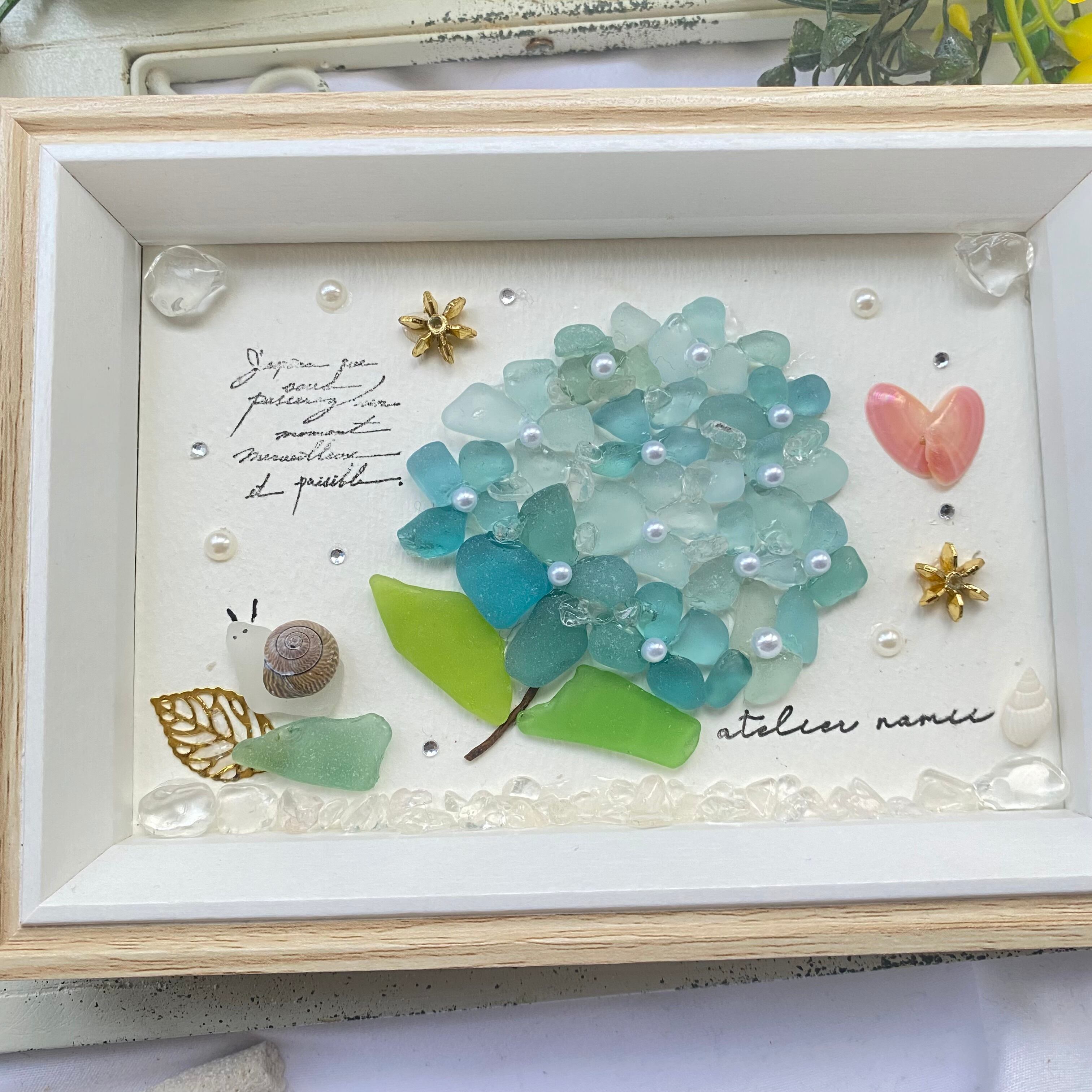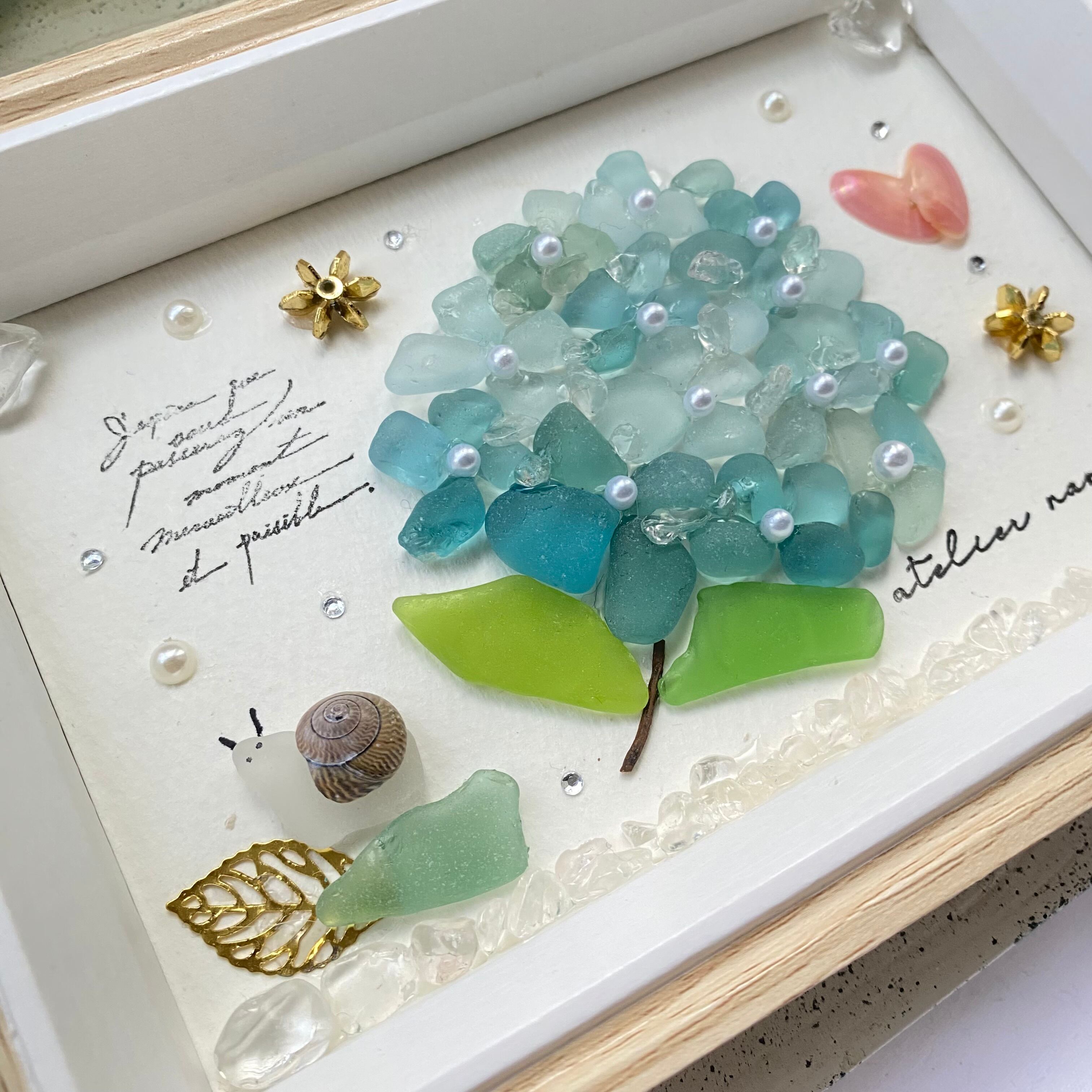 シーグラスでジメジメする梅雨時期にも癒しをお届けできる作品です。
