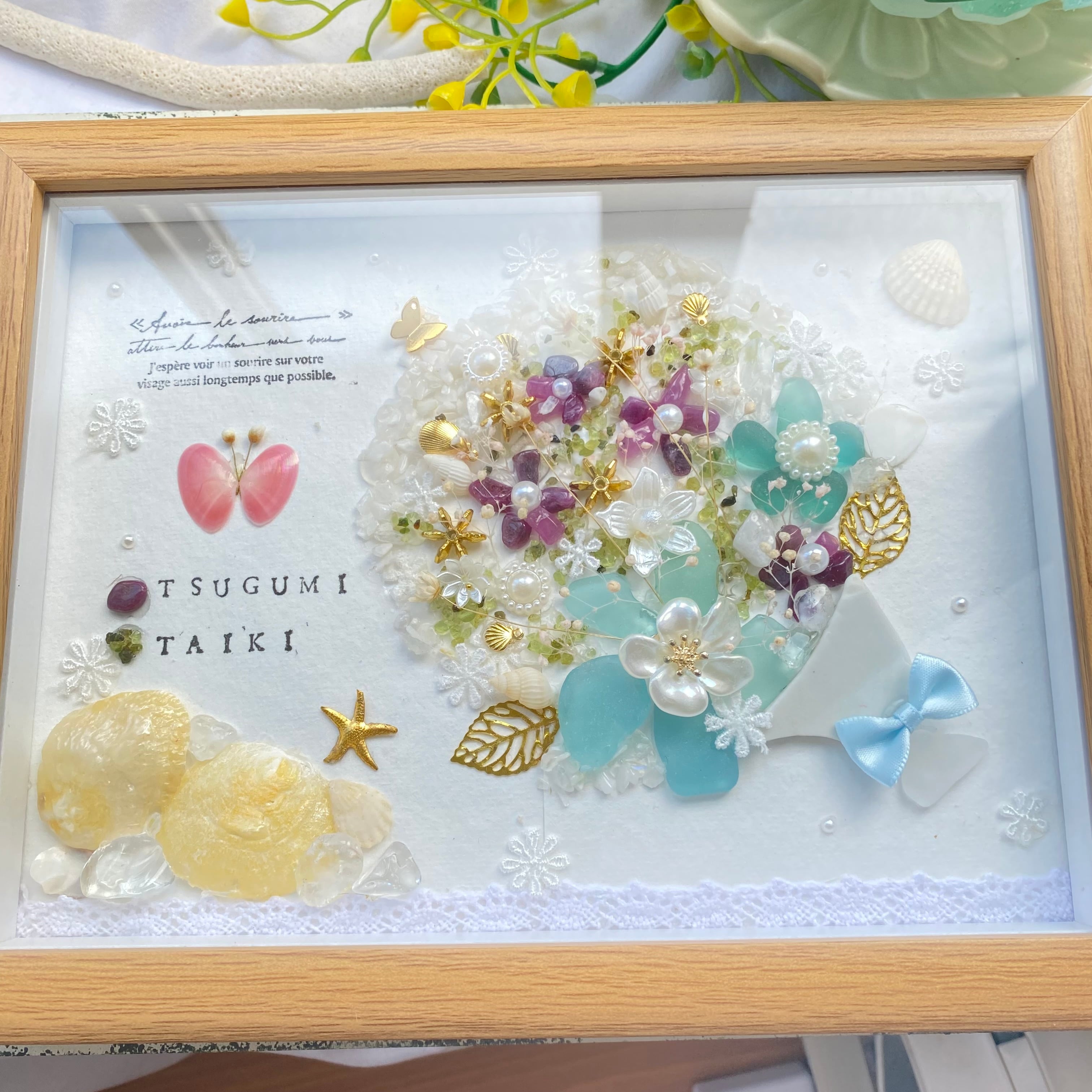 【ご出産祝いオーダー品】【ガラスフレーム作品】"大切な人に花束を。"