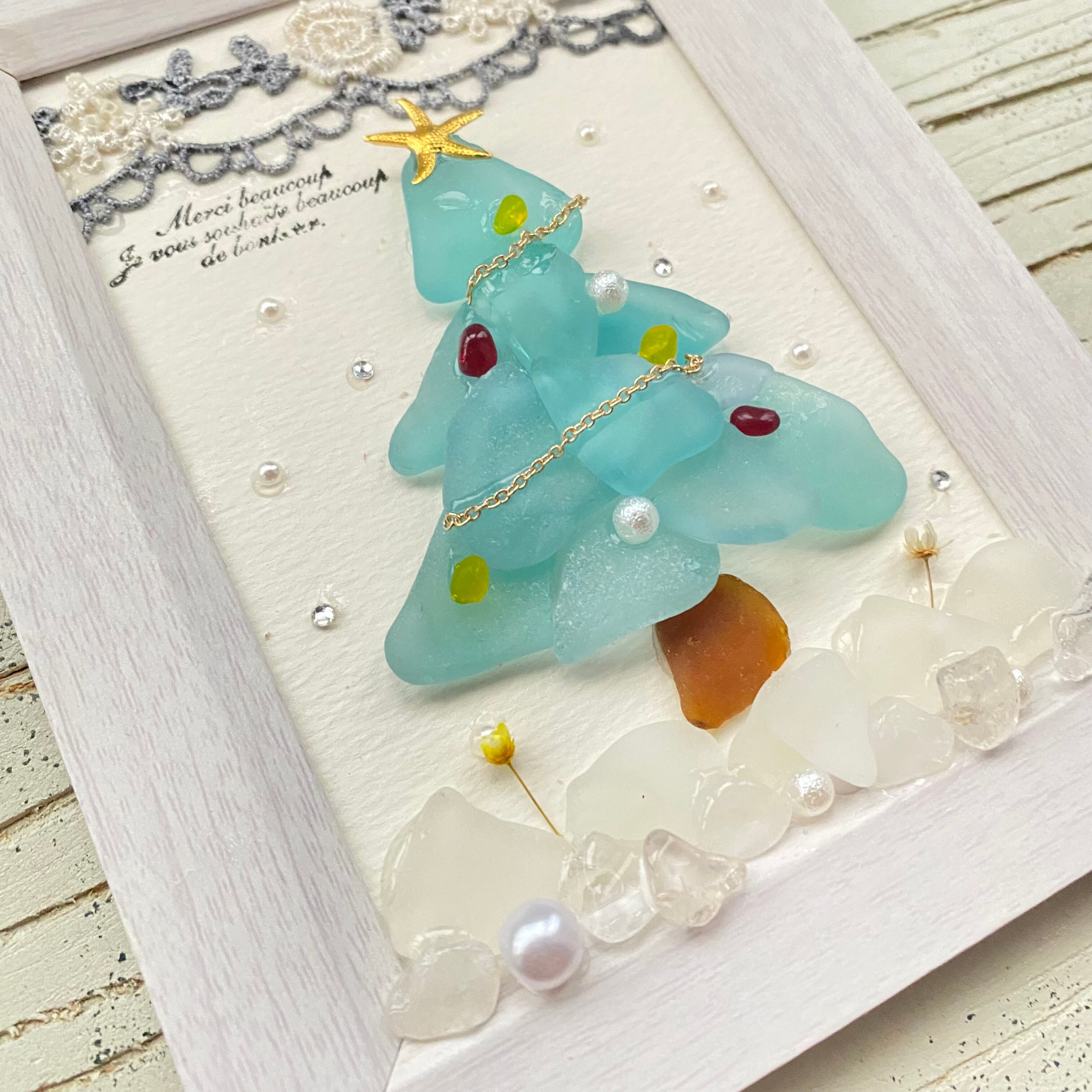 "海色シーグラスのクリスマスツリー。"