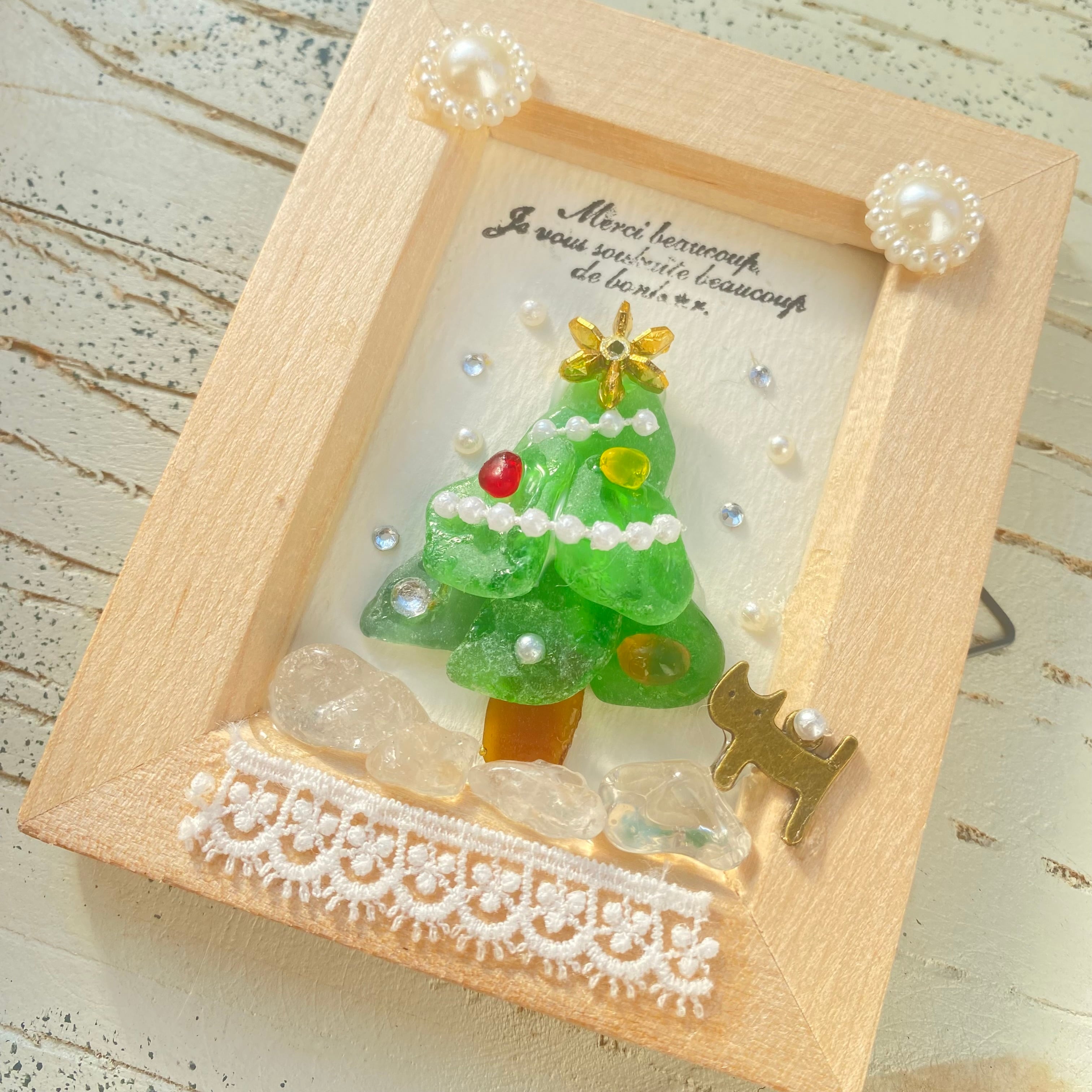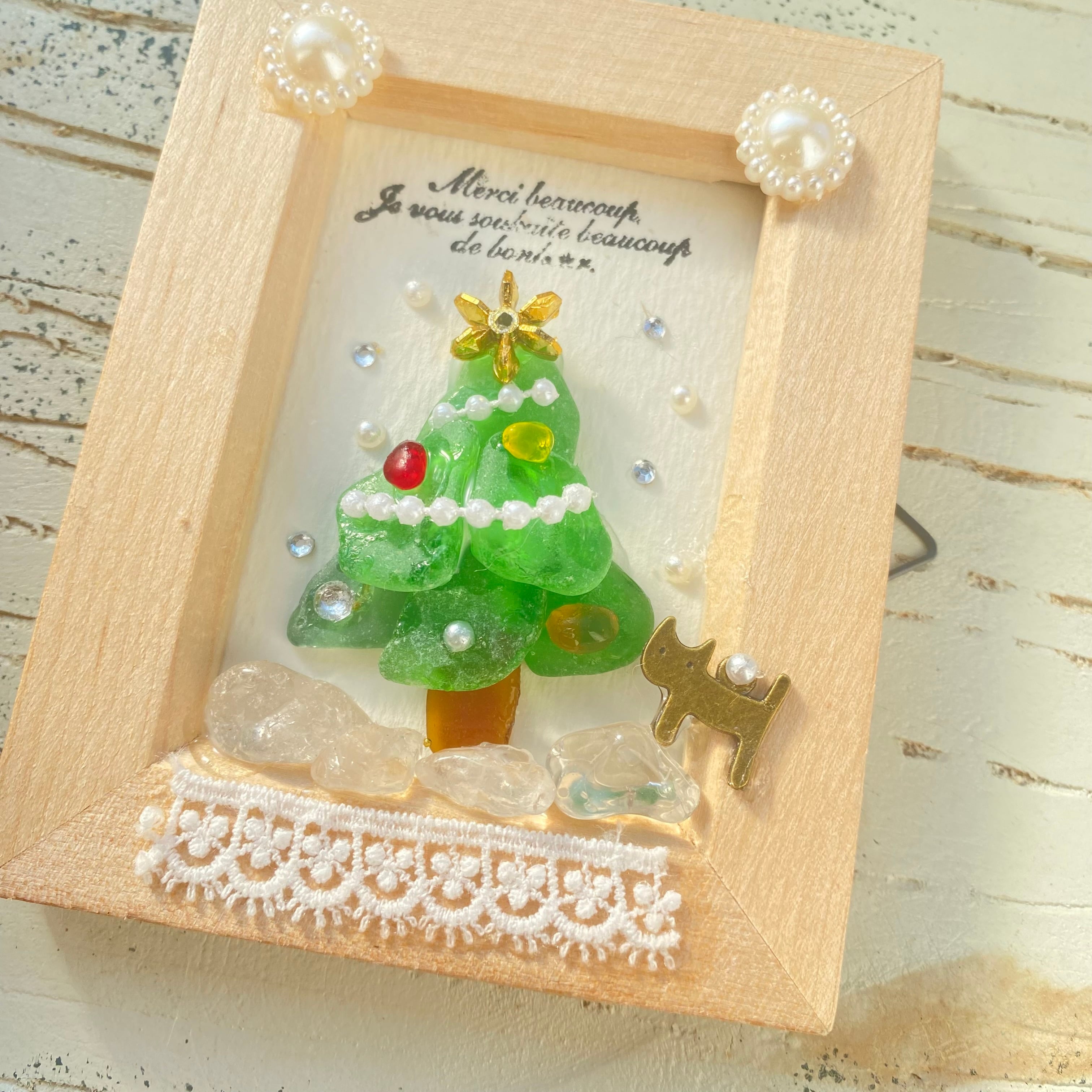 シーグラスと天然石を使ったちいさなクリスマスツリーアートです。