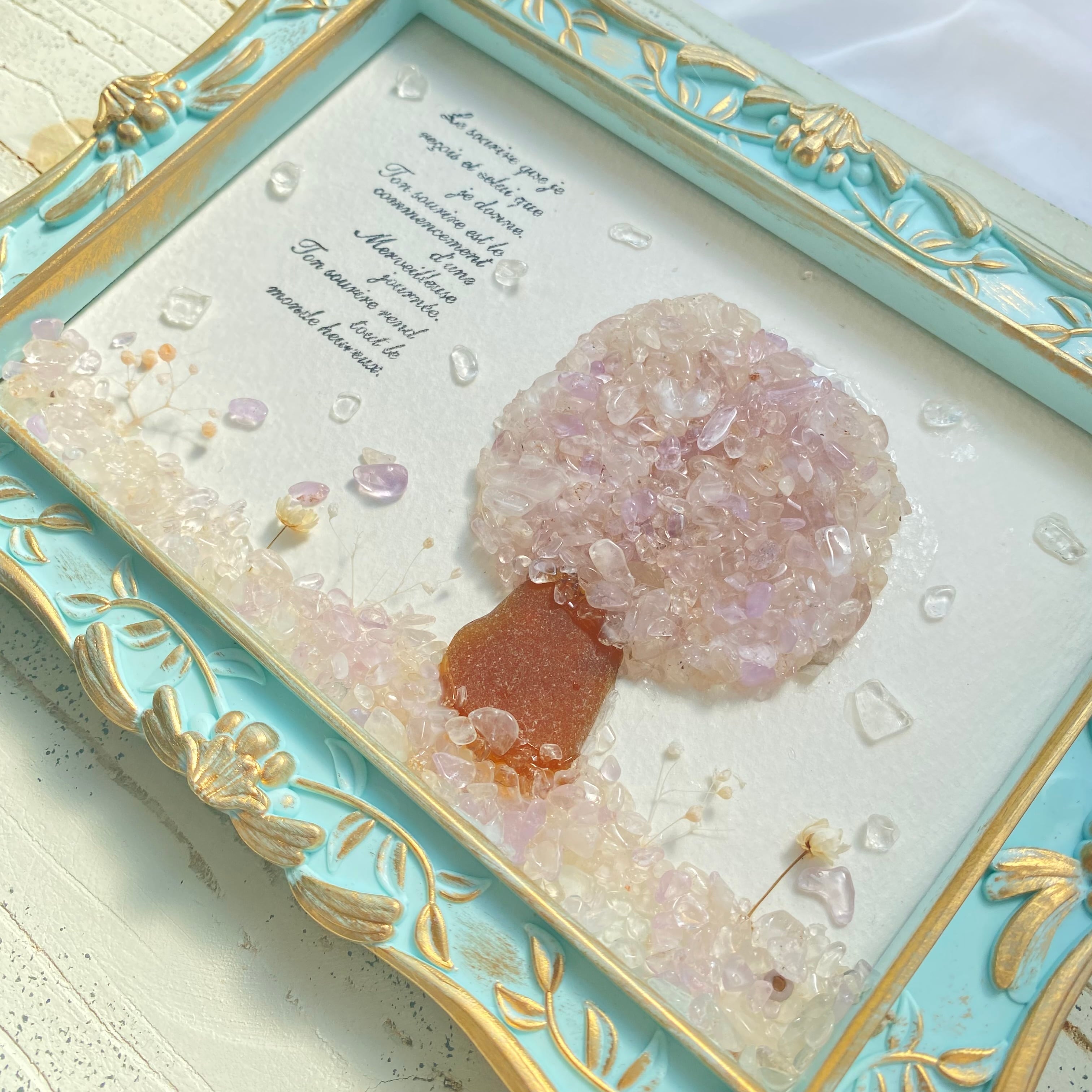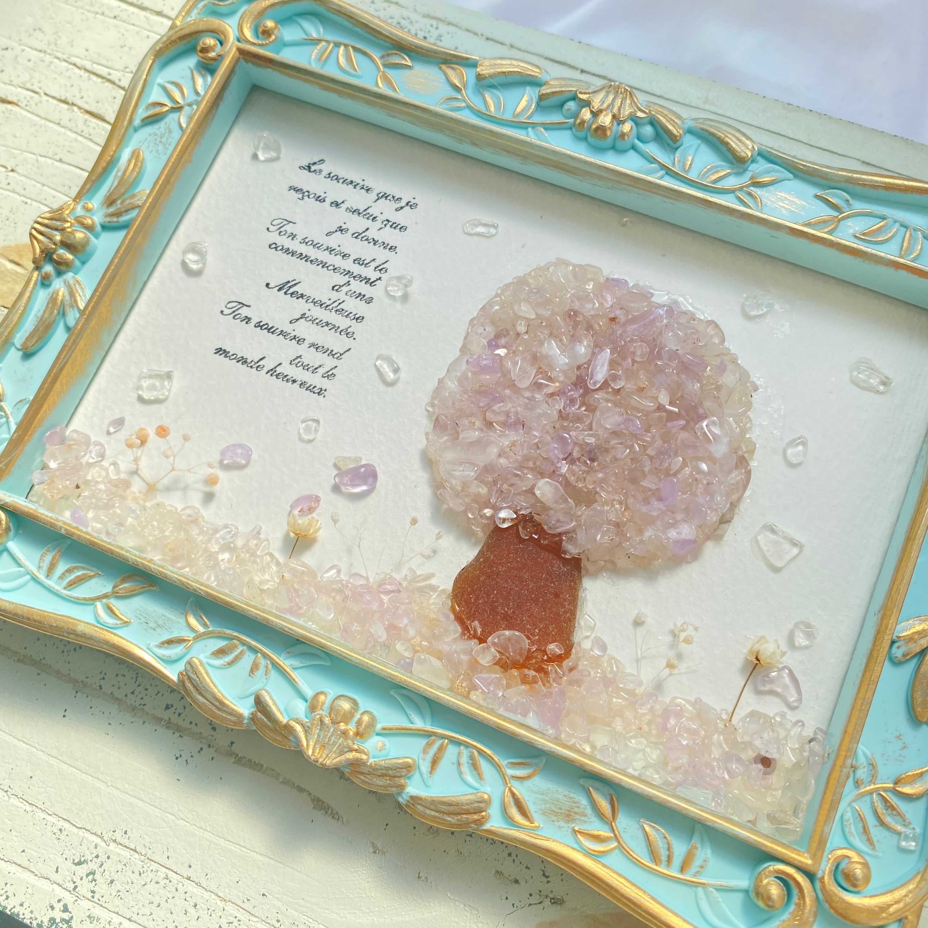 天然石ラベンダーアメジストのさざれ石を盛り沢山に使った木をつくりました。