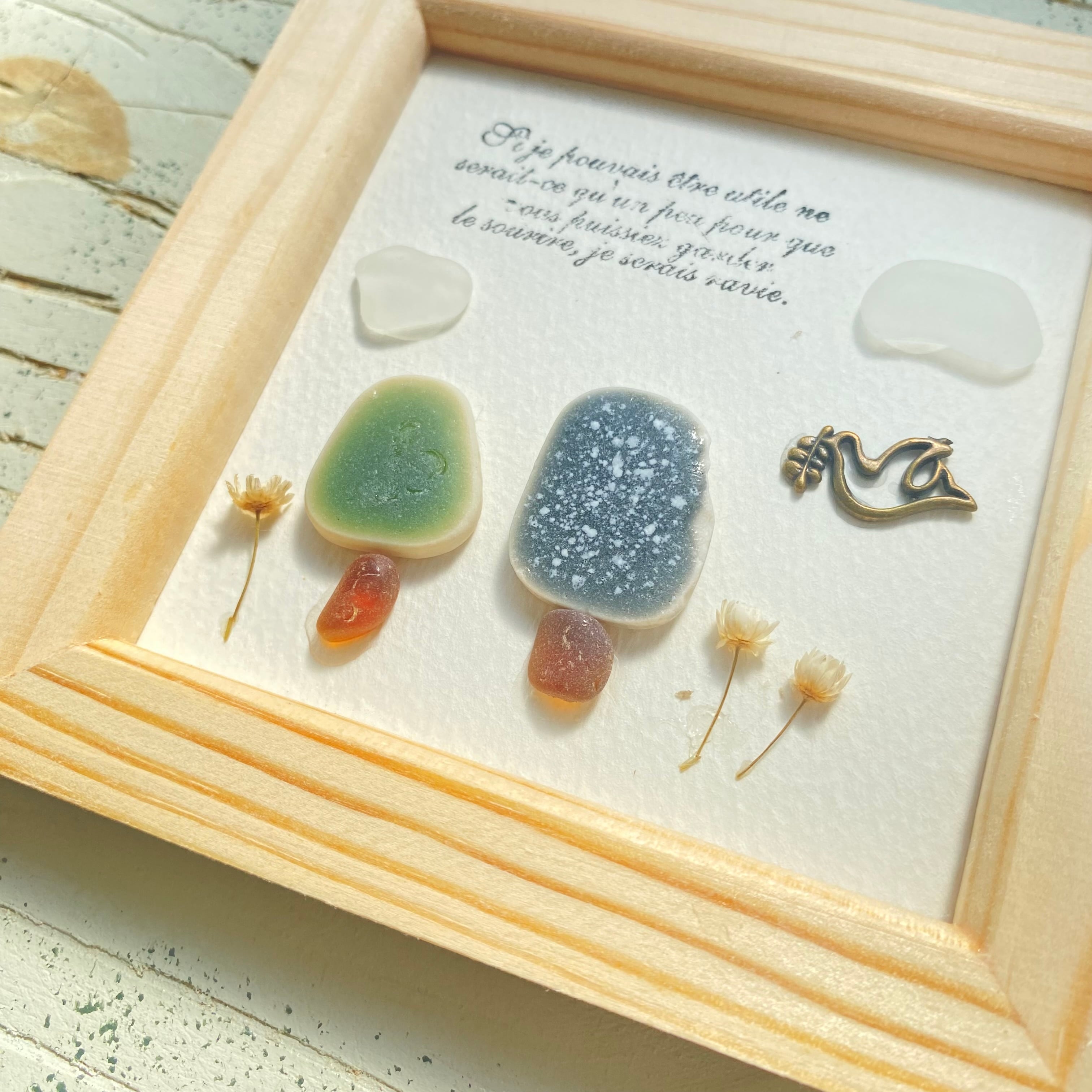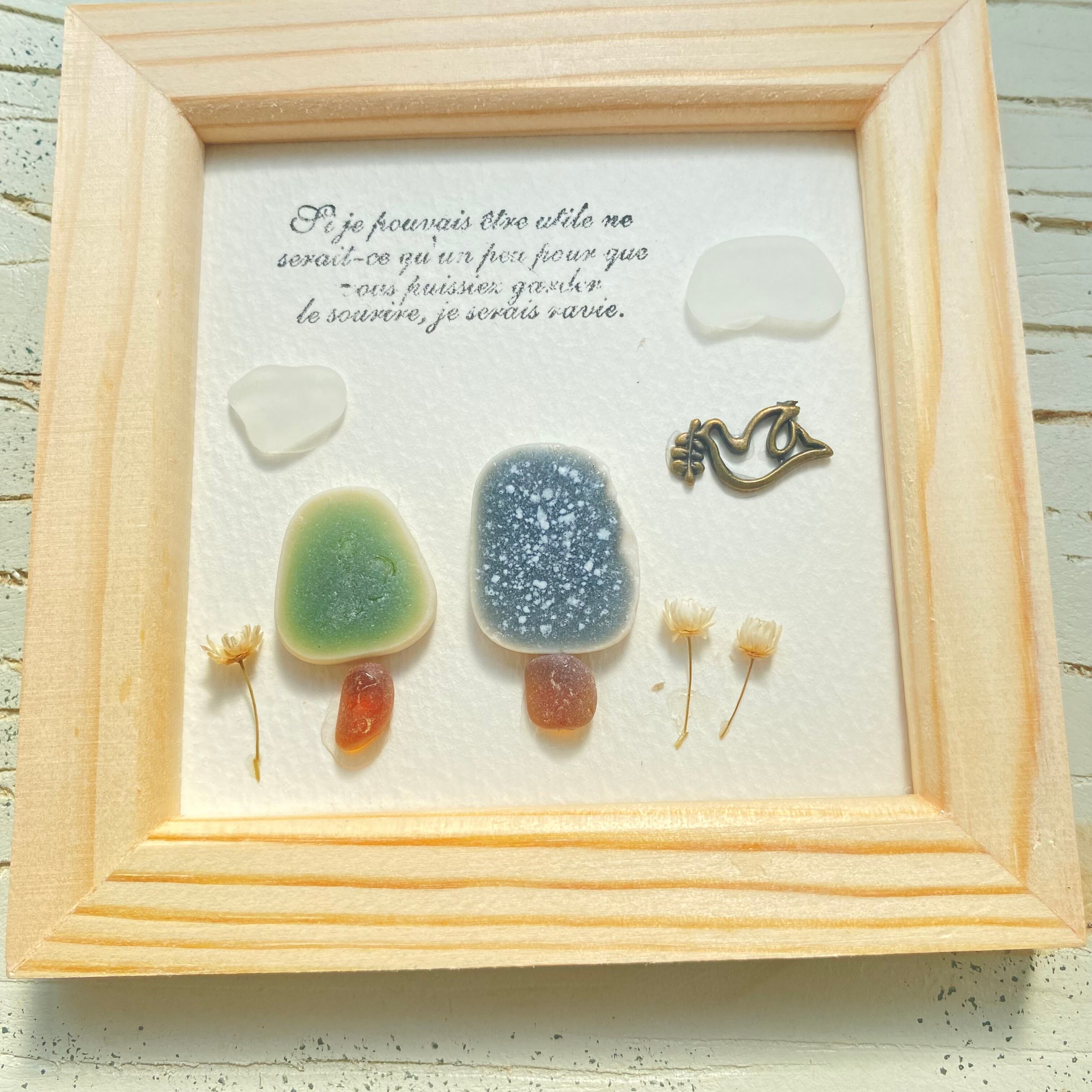 海の宝物、シータイルでできたおうちと木の可愛い作品です。
