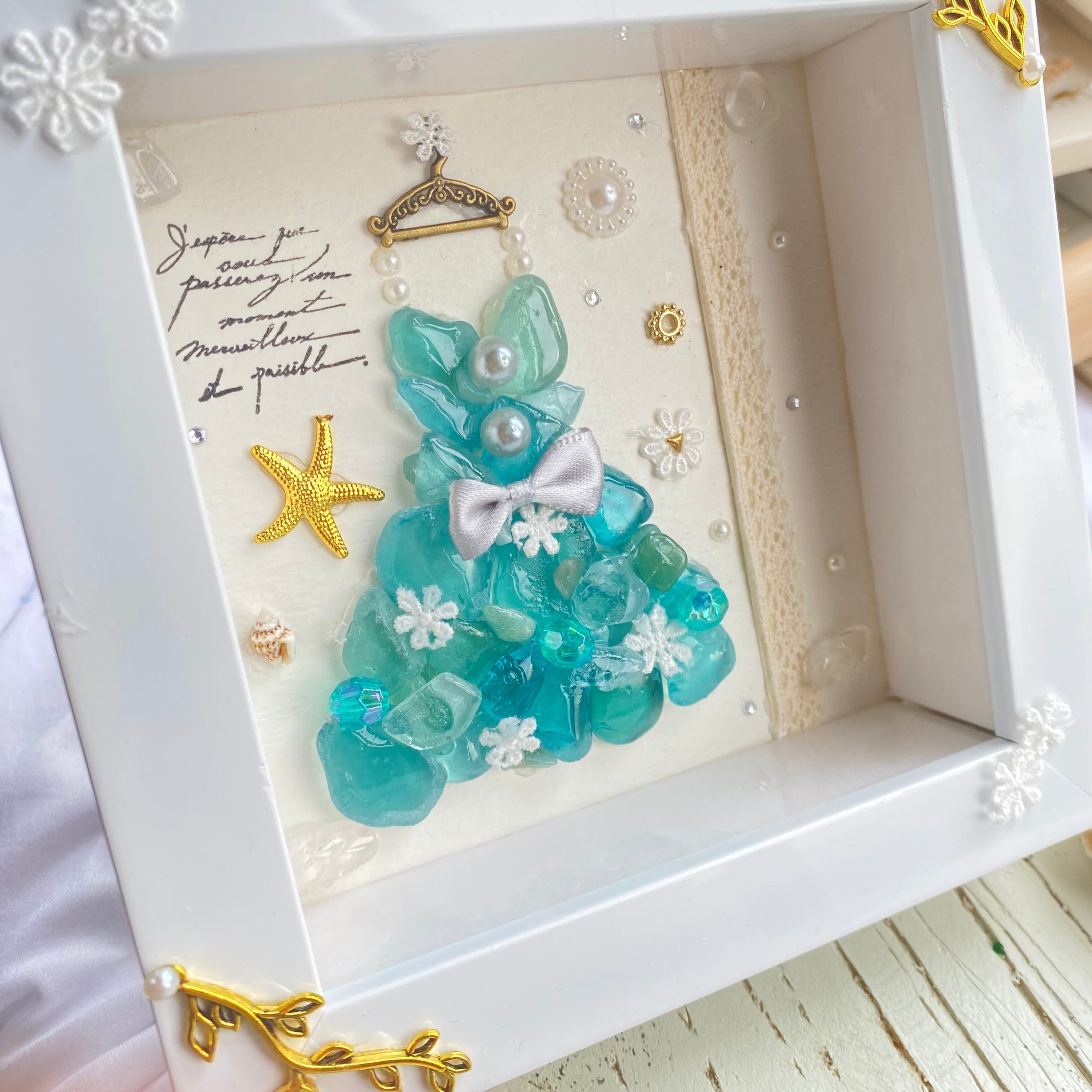 レジンでツヤを出し、光にあてると、よりきらっと光り綺麗です。