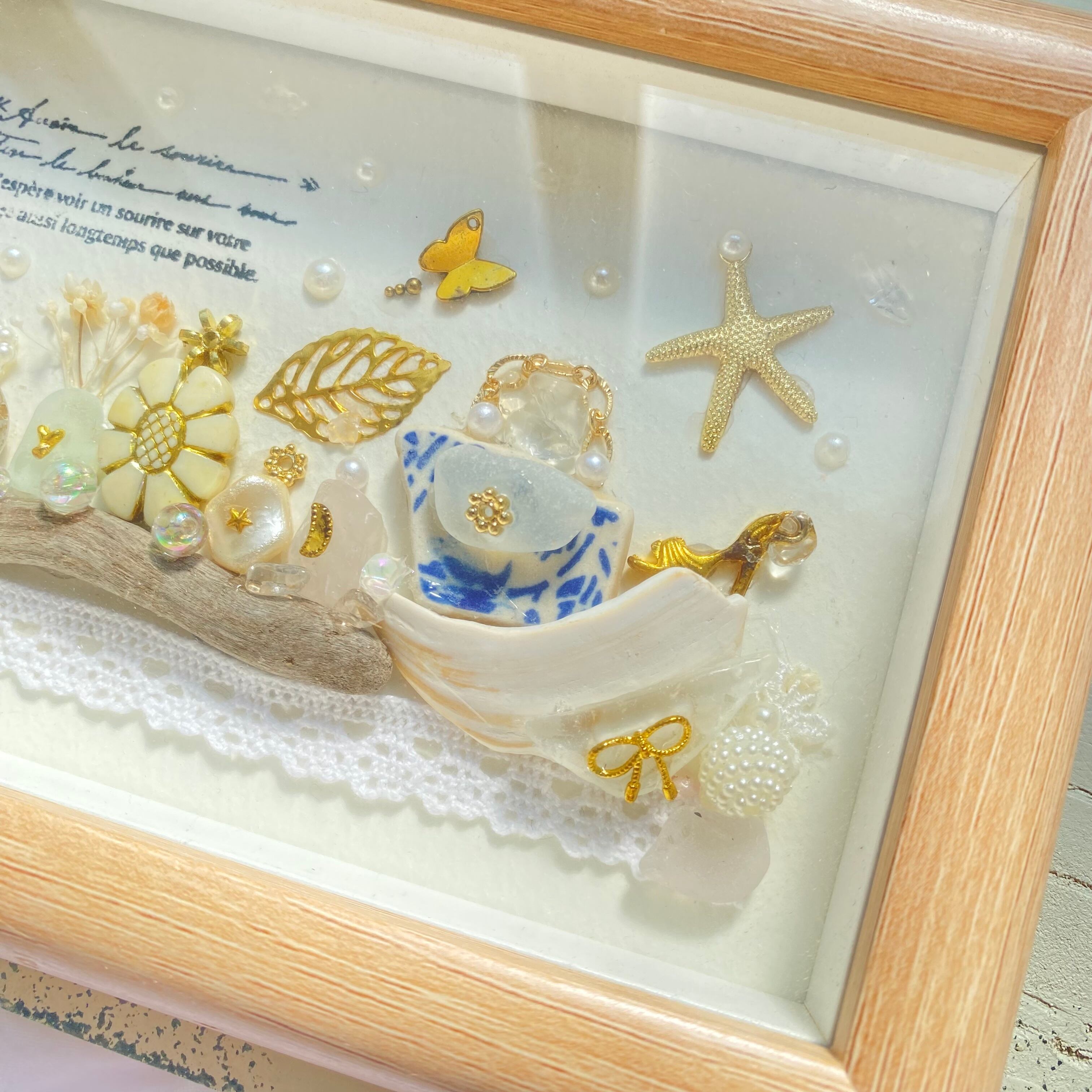 【ガラスフレーム作品】"海のキラキラアイテム"