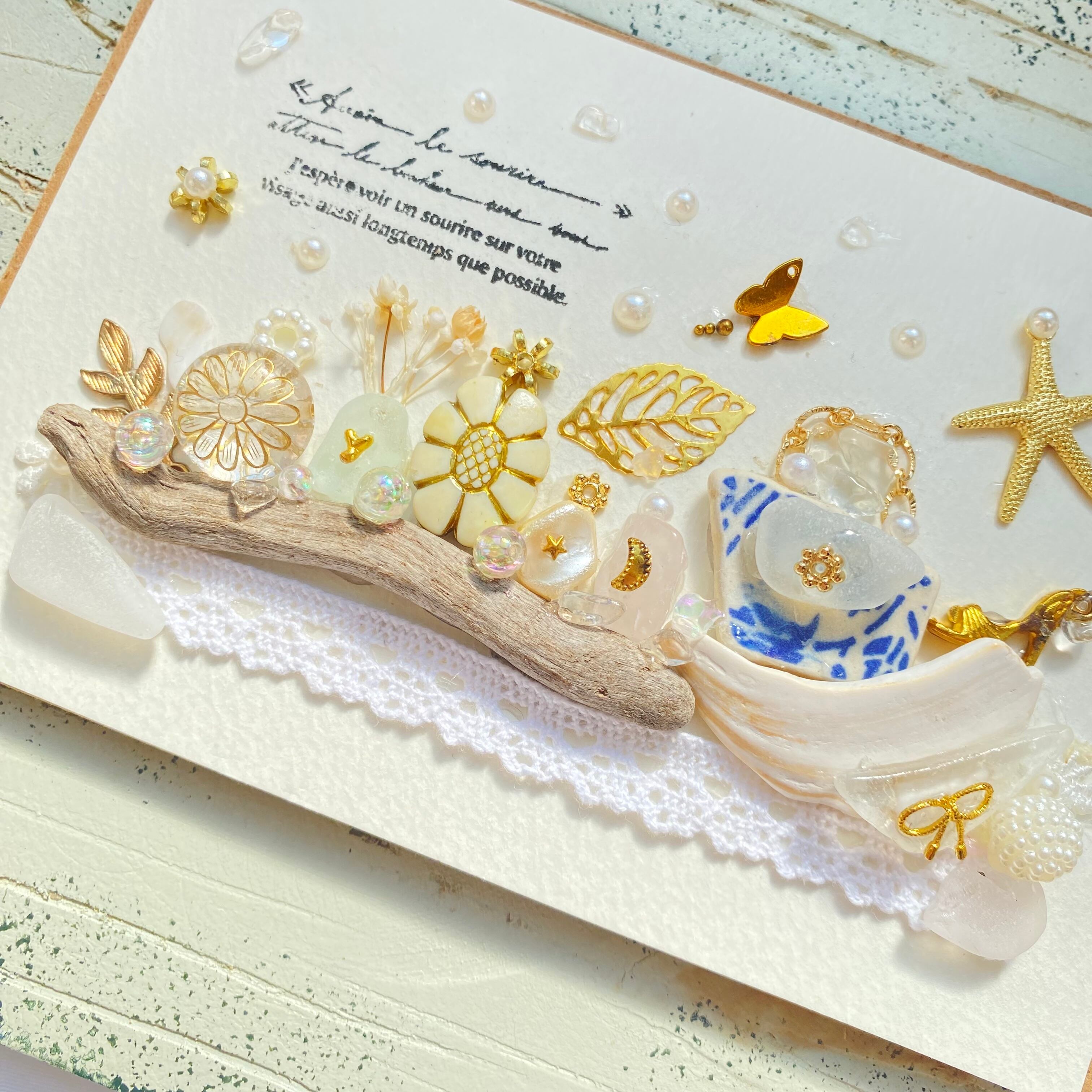 海からの贈り物ときらきらのチャームなどを組み合わせて可愛らしい世界観を作りました。