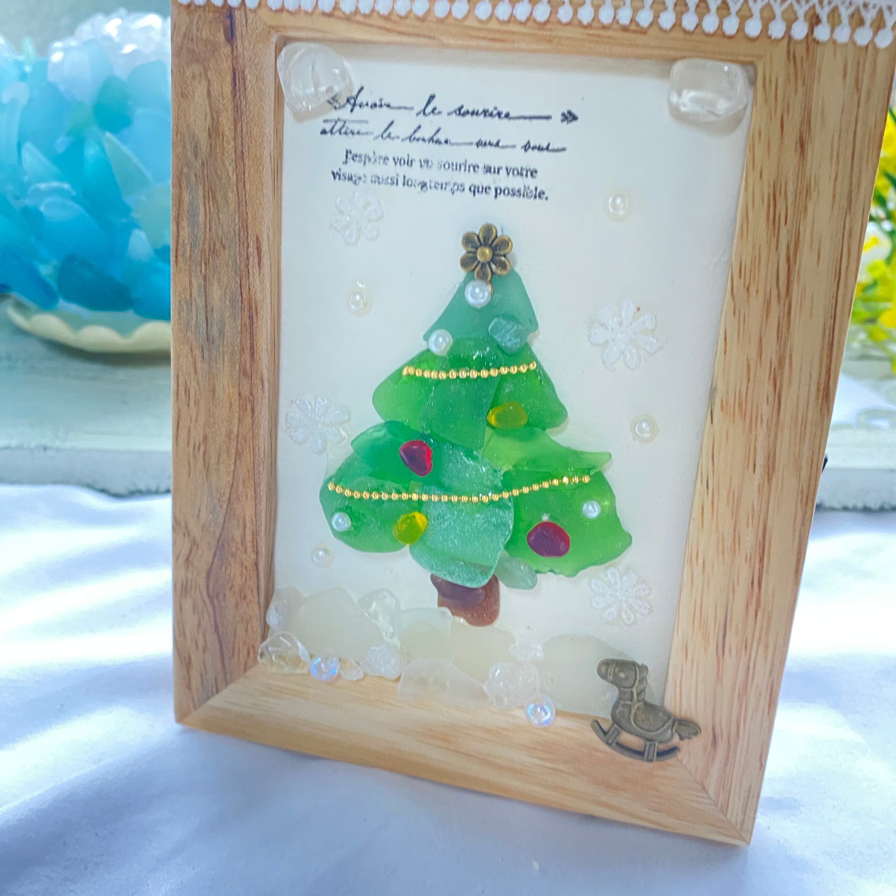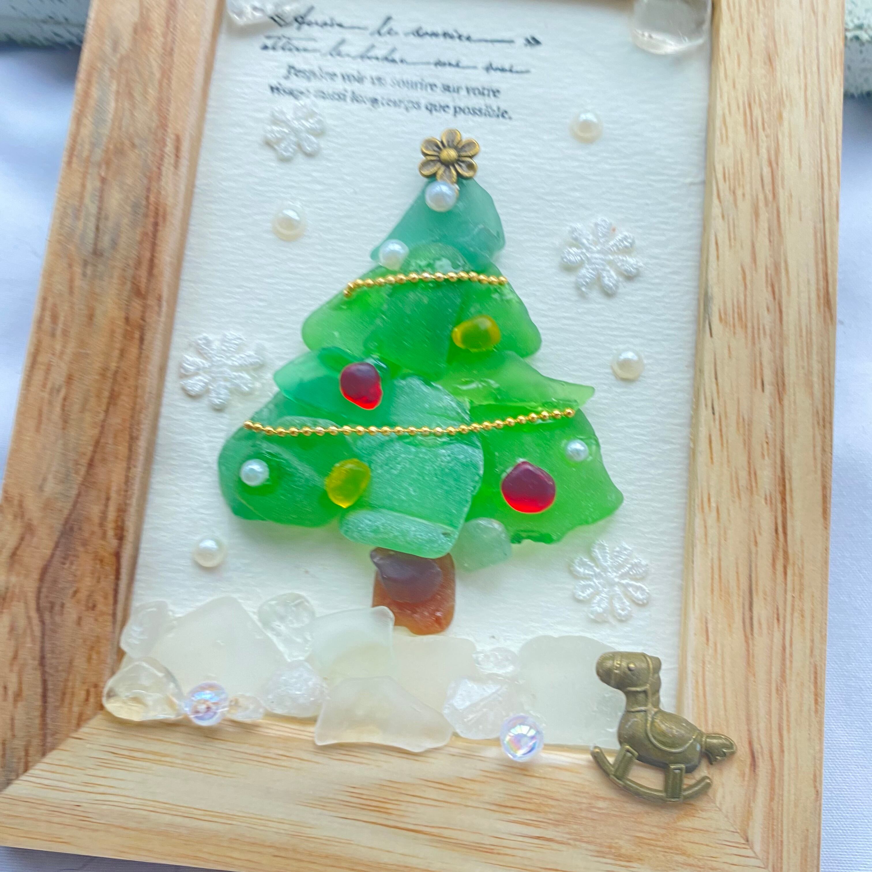 シーグラスと天然石を使ったクリスマスツリーアートです。