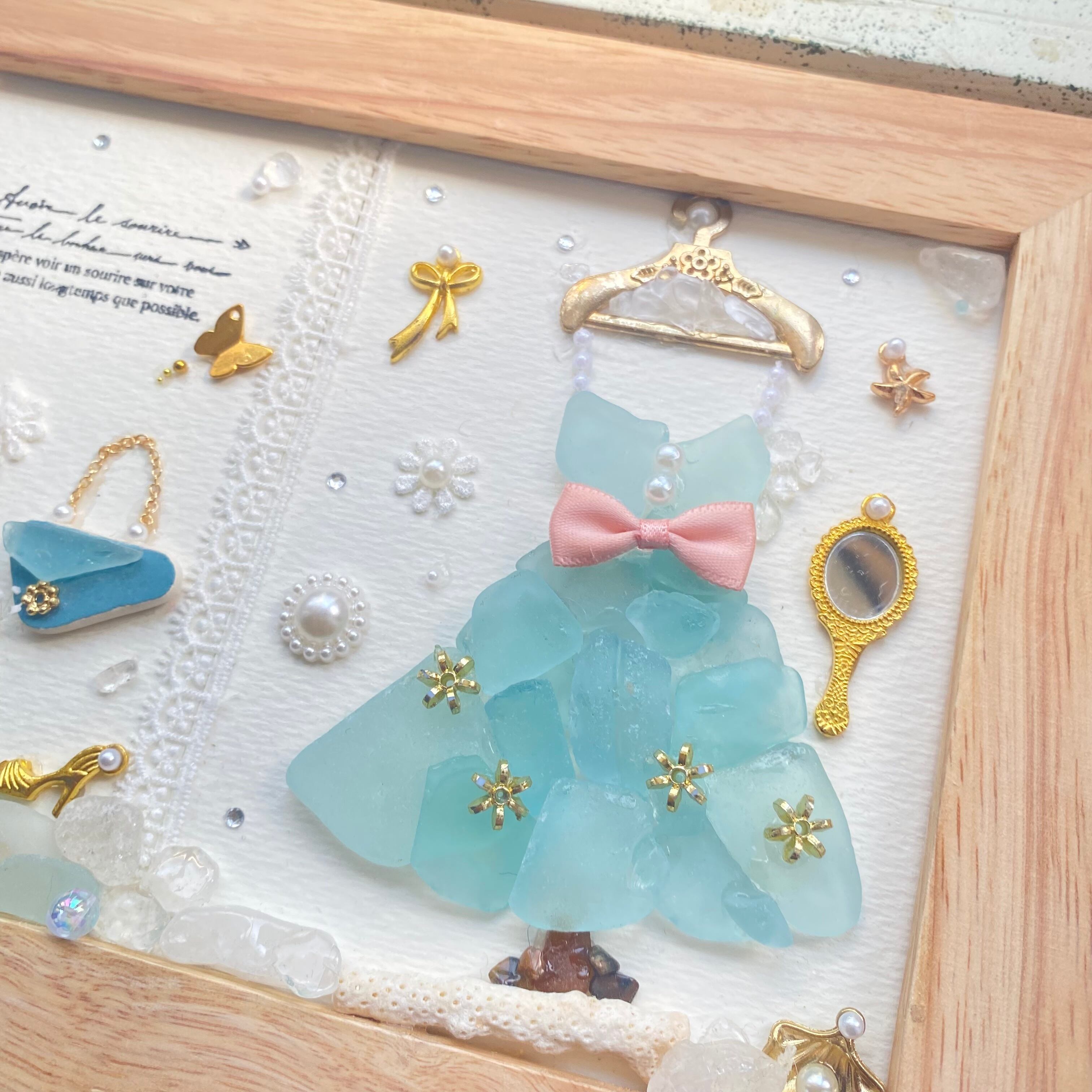 シーグラスによってドレスの色味が変わりますがこちらは淡い水色のお色味でやさしい雰囲気のドレスになりました。