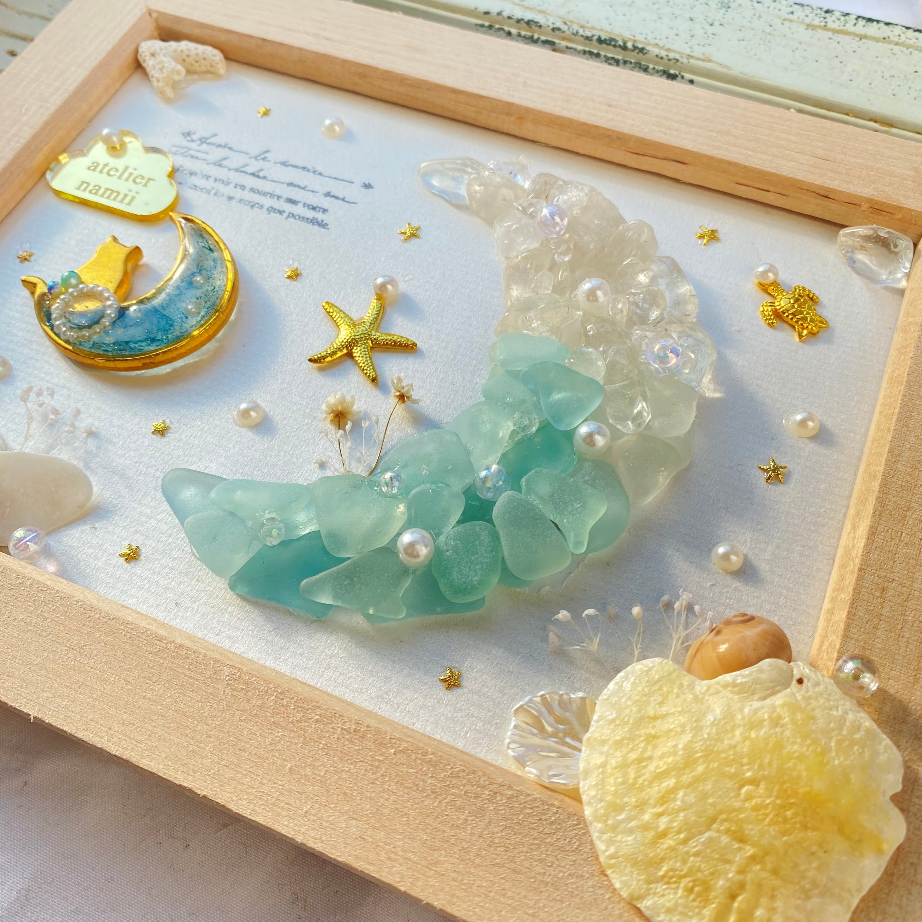 "水晶とシーグラスの三日月と猫と。"【レジン猫作品使用】