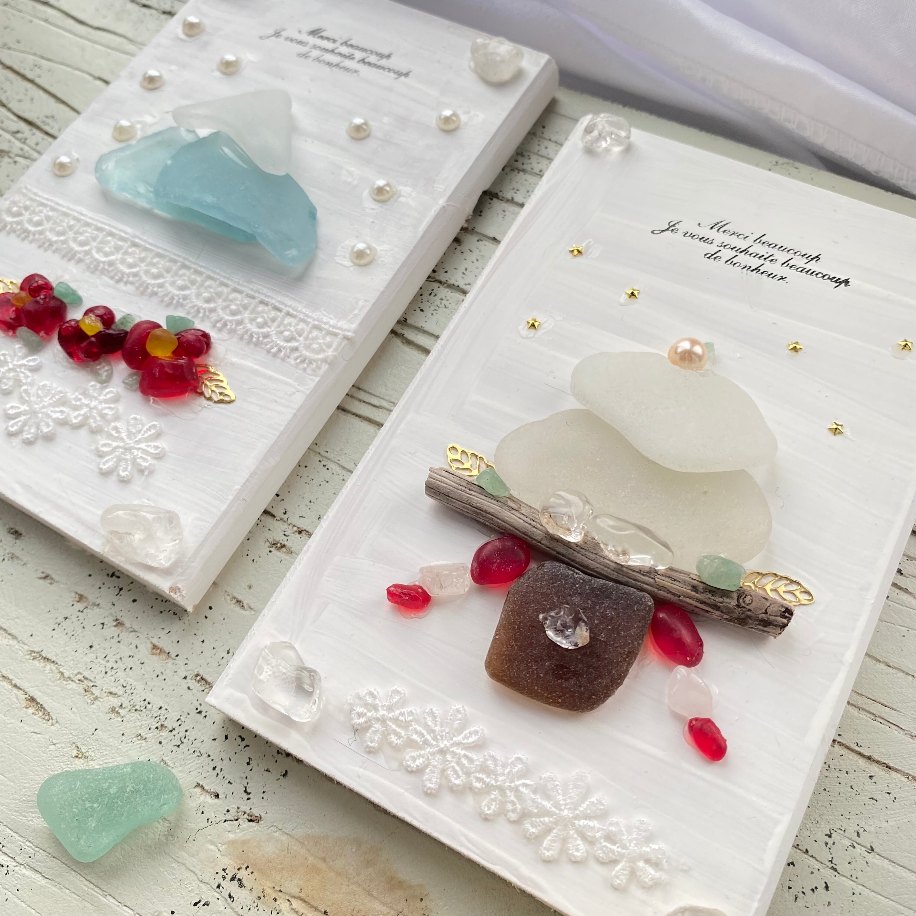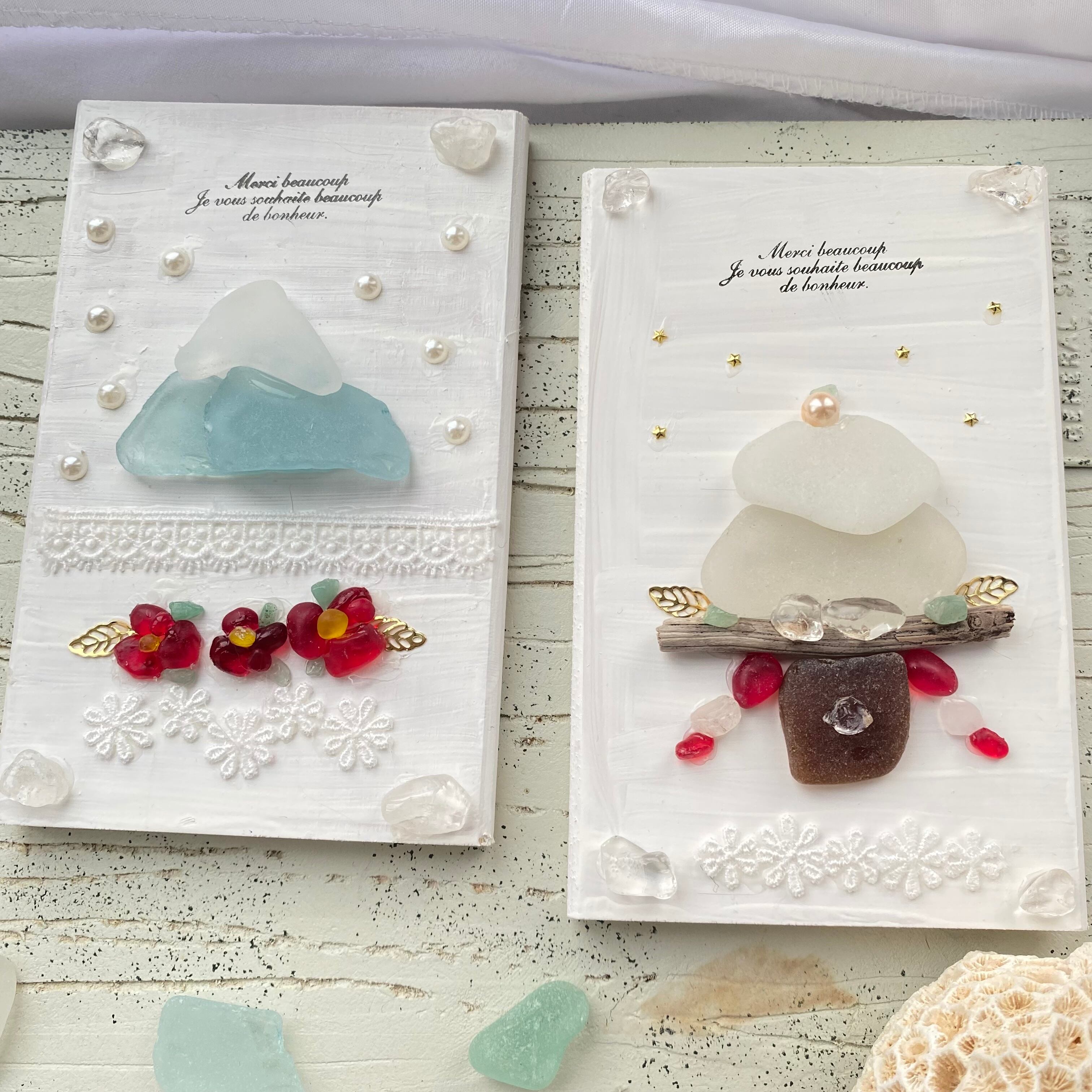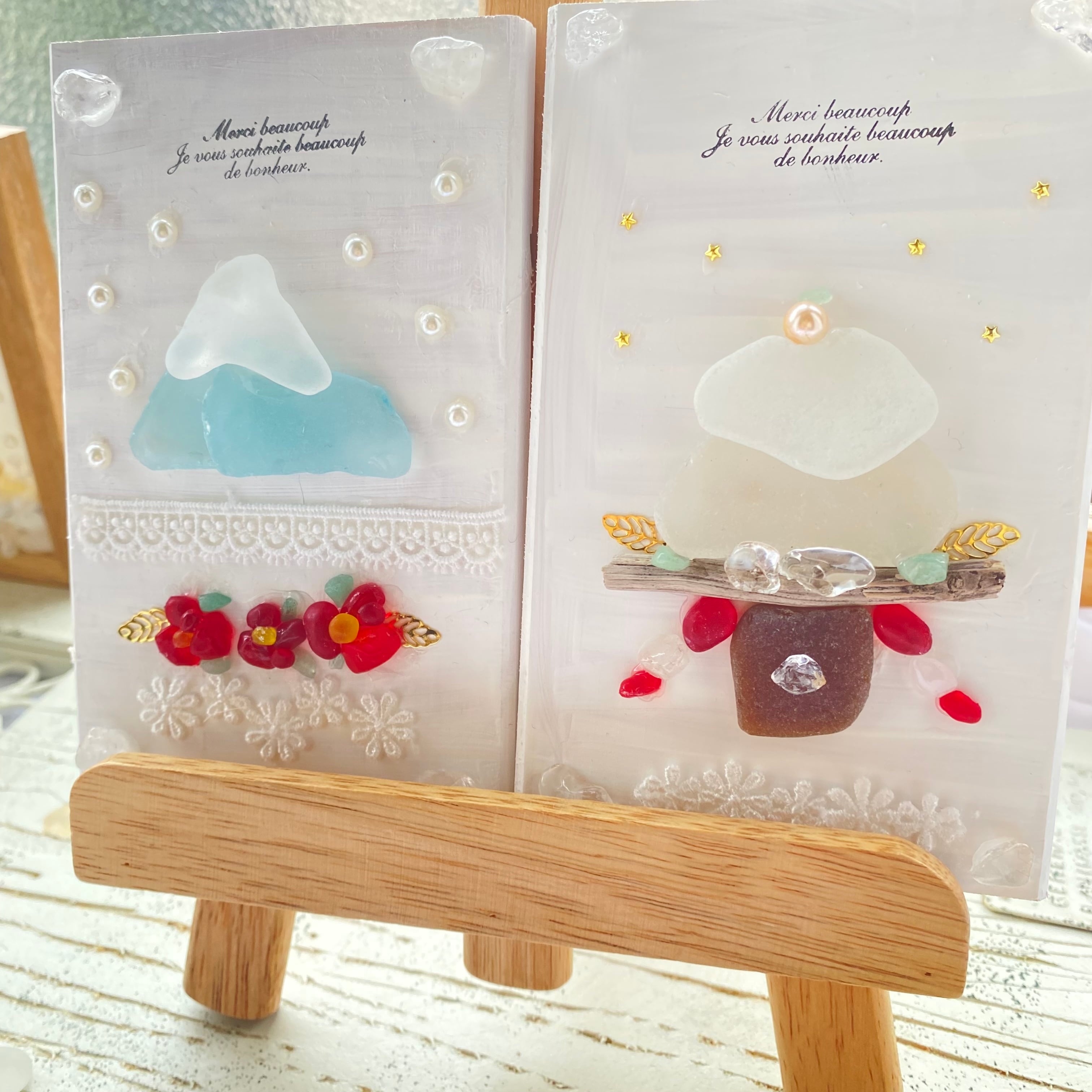 白いシーグラスの鏡餅と青いシーグラスを使った