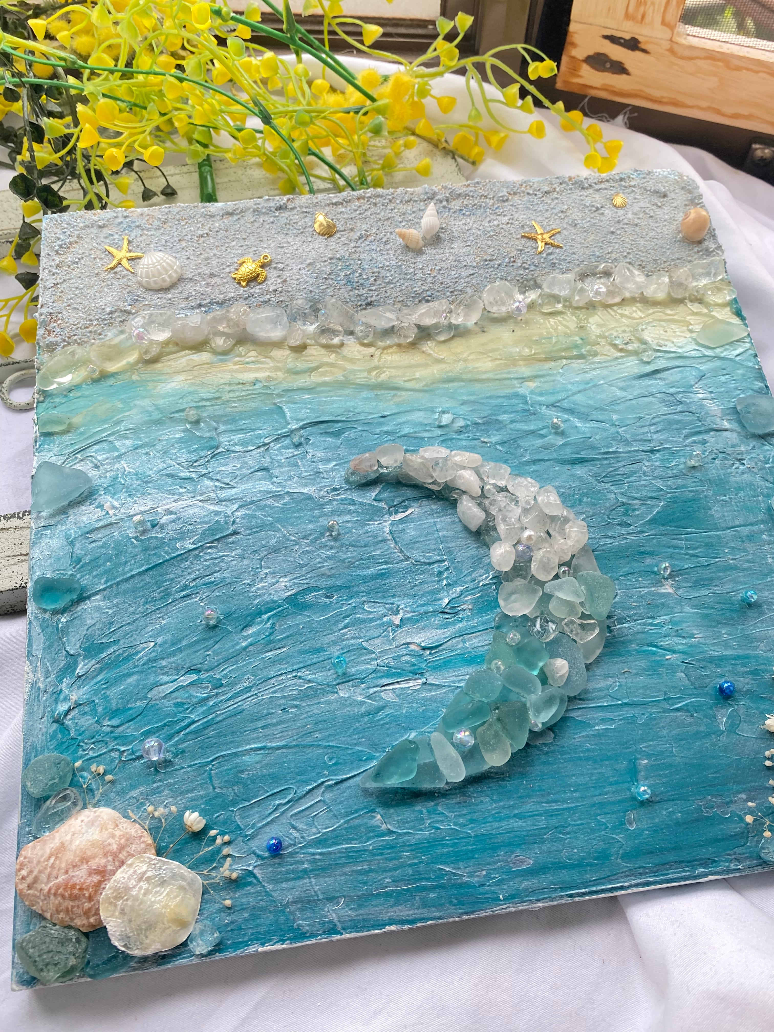 【テクスチャーアート✖️シーグラス天然石アート】