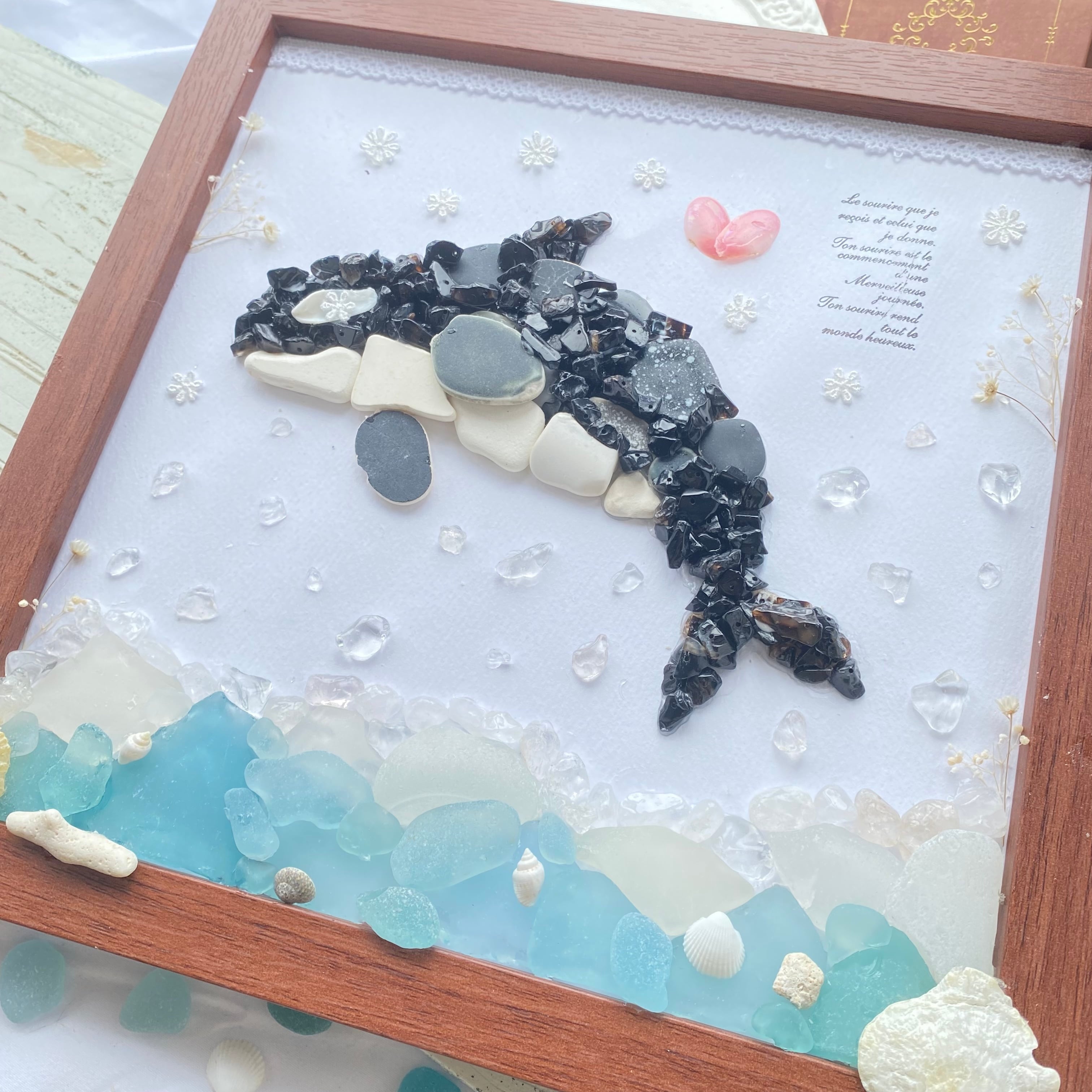 シャチの黒い天然石のオニキスのさざれ石を沢山使っていてオニキスには"魔除け・厄除け・邪気祓い、目標達成、才能を引き出す、夫婦円満"などの石言葉があるので